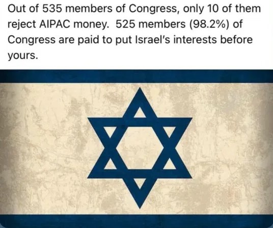 Van de 535 Amerikaanse volksvertegenwoordigers zijn er slechts 10 die geen geld van de joodse lobby aannemen.
