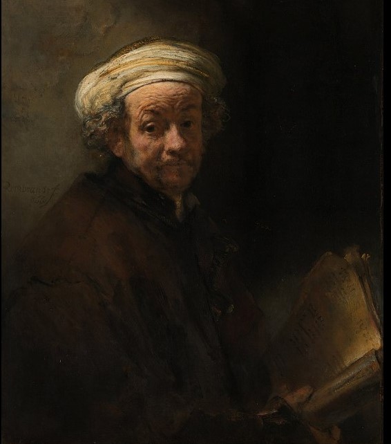 In een van zijn laatste zelfportretten beeldt Rembrandt zichzelf af als de apostel Paulus. In een vroeger schilderij uit 1627 had hij deze apostel al eens geschilderd, hoe die nadenkend in de gevangenis zat en in een groot boek schrijft, toen nog met de trekken van een oude man. Nu geeft hij de apostel zijn eigen gelaatstrekken. Laat men de merkwaardige blik op zich inwerken dan schijnt die te zeggen : ja, ook ik heb het licht van Damascus mogen zien. “Wil Rembrandt hier zeggen dat hij – zoals de verblinde Saulus die door de duisternis moest gaan – de “klaarheid van dit licht” heeft gezien ?" We mogen aannemen dat een mens die zijn leven lang geworsteld heeft met het geheim van licht en duister, een diepe verbinding moet hebben met de ervaring van Paulus in Damascus. In het late zelfportret als apostel Paulus kunnen we een vingerwijzing zien van de kunstenaar naar een diepere laag van zijn persoonlijkheid.