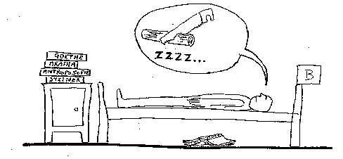 ![]() Bij een slapende mens zien we het fysieke lichaam en, omdat hij leeft, weten we dat hij een ETHERLICHAAM heeft. Dit laatste houdt het eerste in stand, geeft hem zijn vorm. Als het verdwijnt sterft de mens(bed A). Pas op : we zeggen etherLICHAAM maar we stellen ons niets stoffelijks voor.