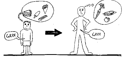 ![]() Het bewustzijn van een eigen Ik te hebben is dus sterk geworden. Maar wat is dit Ik ? Dat is iets dat iedere mens slechts van zichzelf kan zeggen: Ik. Het is dus iets innerlijks voor de ziel, in tegenstelling tot bvb. een hongergevoel dat voor de ziel eigenlijk buiten is. Dit individuele, innerlijke is een deel van de Geest die achter alle verschijnselen steekt. De bedoeling van alle cultuur is : dit deeltje van de geest, dit Ik, te ontwikkelen. Daartoe wordt het Ik zelf werkzaam. Het werkt aan de ziel, aan zichzelf. Maar het Ik kan nog verder gaan, en bvb. aan het astraal lichaam beginnen werken. Het verkrijgt dan controle over begeerten. Het deel van het astraal lichaam dat zo omgevormd is, wordt GEESTZELF of manas genoemd. Voorbeeld: een mens werkt aan zijn astraal lichaam,in dit geval door het inzicht dat men moet lekker vinden wat goed is voor het lichaam.