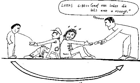 ![]() Het Ik kan daarna ook aan het etherlichaam beginnen werken. Dat is al moeilijker, daar zit immers ons karakter, onze gewoontes. Het deel van het etherlichaam dat zo omgevormd is, wordt LEVENSGEEST of boeddhi genoemd. Voorbeeld: een mens werkt aan zijn etherlichaam,in dit geval onder invloed van godsdienstige gevoelens.