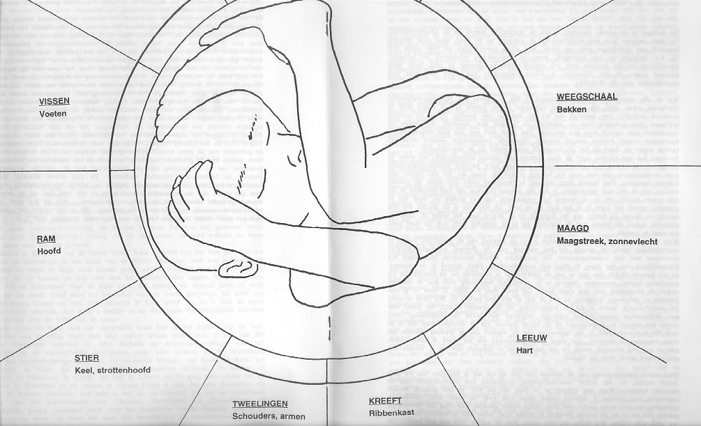 We vertaalden een deel van de achtste voordracht, een soort conclusie. De uiteenzettingen die eraan vooraf gaan zijn eerder gecompliceerd en daardoor niet samen te vatten, de liefhebber moet ze zelf maar nalezen. [...] "Van wat we vandaag het fysieke lichaam noemen werd de eerste kiem gevormd tijdens de vroegste vorming van Saturnus. Het fysieke lichaam was toen nog niet doortrokken van een etherlichaam, noch van een astraallichaam, maar kreeg toch reeds mee wat later, na vele omvormingen de drager van de huidige mensenwezenheid zou worden. Zeer traag en geleidelijk werd de kiem van het menselijk fysiek lichaam gelegd tijdens de oude Saturnusontwikkeling, en doordat de oude Saturnus zelf gevormd werd, wentelend langs de afzonderlijke tekens van de dierenriem, ontstond telkens de kiem van een ander deel van dat lichaam. Toen Saturnus in het teken van de Leeuw stond, werd de kiem van het hart gevormd. De aanleg van de ribbenkast: in het teken van de Kreeft. Het plan voor een symmetrische bouw, zodat de mens er langs twee kanten gelijk uitziet, ontstond in het teken van de Tweelingen. En zo kunnen we stuk voor stuk het mensenlichaam nagaan. Kijken we naar dat deel van de dierenriem waar de Ram staat, dan kunnen we zeggen: toen de oude Saturnus op die plaats stond werd het bovendeel van ons hoofd aangelegd. De kiem van ons spraakorgaan kregen we mee toen Saturnus in Stier stond. En als u zich de mens aldus opgedeeld voorstelt, dan kunt u buiten in de dierenriem de scheppende krachten zien die instaan voor de leden van de mens. In de oude mysteriën heeft men dat voorgesteld zoals hier op het plafond van de zaal. We bevinden ons toevallig, zoals men zegt -toeval bestaat echter niet- in een zaal die met een dierenriem versierd is. Men beeldde de dierenriem vroeger niet af, uiteengelegd in de verschillende dierfiguren, maar men tekende in de betreffende regionen het overeenkomstige deel van het menselijk lichaam: het hoofd in Ram, het strottenhoofd in Stier; dat wat het best de symmetrie uitdrukt, de armen, in Tweelingen; de ribbenkast in Kreeft, het hart in Leeuw; en zo ging men verder tot de onderbenen in Waterman en de voeten in Vissen. Denkt u zich dus zo'n dierenriem als mens in de kosmos getekend, dan hebt u wat uit de kosmos, d.i. uit de betreffende krachten van de hiërarchieën van Thronen, Serafijnen en Cherubijnen de oorspronkelijke aanleg geschapen heeft voor het menselijke fysieke lichaam. Dat is de grote kosmische mens, de mens die door alle wereldsagen en wereldmythen gaat, en waaruit de afzonderlijke mens gevormd werd in de meest verschillende gestalten. Denkt u aan de reus Ymir die uitgebreid is in de grote kosmos, want de mikrokosmische mens wordt gevormd uit de reus. U vindt hem overal, de grote makrokosmische mens, die daar schepper is, die daarbuiten alles bevat wat de mens in zijn binnenste heeft. Want aan de basis van zulke voorstellingen ligt een diepe waarheid, een waarheid die naargelang het helderziend vermogen van de verschillende volkeren min of meer gebroken tevoorschijn treedt. Ze treedt ook tevoorschijn in de wijsheid die in het Oude Testament uitgedrukt wordt. Ze treedt tevoorschijn in de wijsheid die als Oudhebreeuwse geheime leer steunt op de geheime leer die aan de basis ligt van het Oude Testament: in Adam Kadmon van de Kabbala. De makrokosmosche mens is geen andere dan de mens die we hierjuist in de kosmos getekend hebben. we moeten er ons slechts op de juiste manier een voorstelling van maken. De leer van de makrokosmische mens zoals we die hier nu ontvouwd hebben, is een leer die inderdaad de diepste wereldgeheimen bevat, een leer die beetje bij beetje in de algemene mensencultuur zal instromen. Men is er vandaag nog ver van verwijderd om deze leer te verstaan, want indien iemand die maar een gewone geleerde is, deze voordrachten beluisterd zou hebben, dan zou hij het publiek waarschijnlijk voor iets anders gehouden hebben dan voor snuggere mensen. Men is er tegenwoordig zeer ver van verwijderd, van het begrijpen van zulke zaken. Maar we staan aan het beginpunt van een tijd waar de feiten die niet in overeenstemming te brengen zijn met de theorie-fantasieën van de huidige wetenschap de mensen ertoe zullen aanzetten om de weg te zoeken naar de grote waarheden van de wereldwijsheid. En men zal nooit achter het geheim van bvb. het conceptiegebeuren komen, waarover de mensen nu zo kinderlijk speculeren, vooraleer men niet kan vruchtbaar maken de leer van de makrokosmische mens. Precies datgene wat zich als een reëel mysterie afspeelt en wat zich als een echt mysterie onttrekt aan instrumenten en werktuigen, dat zal zijn verklaring krijgen als om zo te zeggen het kleinste punt van het onderzoek. Want hoe klein is niet de cel waarin zich de bevruchting voltrekt, vergeleken met de kosmos ! Maar enkel en alleen de geheimen van de grote kosmos zullen openbaar maken wat in de kleinste cel gebeurt. Niets anders kan de geheimen van dit gebeuren in de cel verklaren. In verband met het probleem van de bevruchting zijn de onderzoeken van de uiterlijke wetenschap niet zinloos, ze hebben een bepaalde verdienste. Ze zijn echter allemaal kinderspel, vergeleken met het grote mysterie dat bestaat en alleen kan ontraadseld worden als men zal inzien dat de antwoorden over hetgeen in een punt ligt, op de omtrek moet worden gezocht. Daarom zei de oude mysterieleraar : wilt ge het punt begrijpen, onderzoek de omtrek, want die bevat de oplossing. Dat is het waarop het aankomt: dat men het punt slechts begrijpen kan als men de omtrek begrepen heeft."[...]
