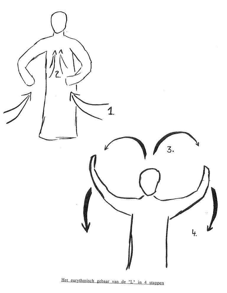 " In de "L" hebben we de klank van de vrije, innerlijke ontplooibaarheid. De armen worden eerst naar onder gebracht met een beweging die a.h.w. iets uit de aardbodem wil uithalen, uitscheppen, schapen; dan wordt het aldus gevormde met de handen dicht bijeen naar omhoog gebracht om het daar als een bloesem te laten openbloeien in een beweging die naar beide zijden uitstroomt en terug naar omlaag gaat, zodat de kringloop terug kan beginnen."