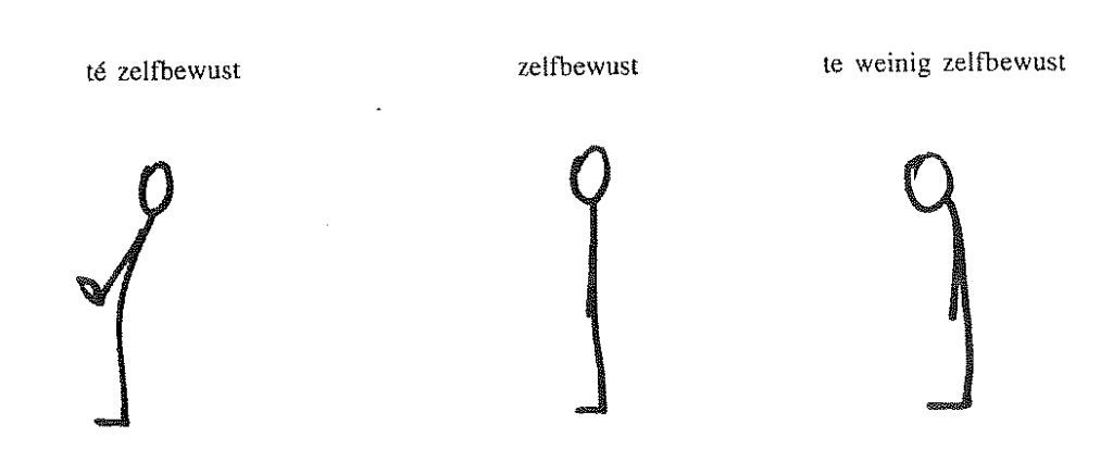 Een voorbeeld: welke houding neem je aan als je jezelf wil laten zien zoals je bent, welke houding neem je aan als je je meer voelt dan de anderen, welke houding als je je zou willen verontschuldigen voor je aanwezigheid ?