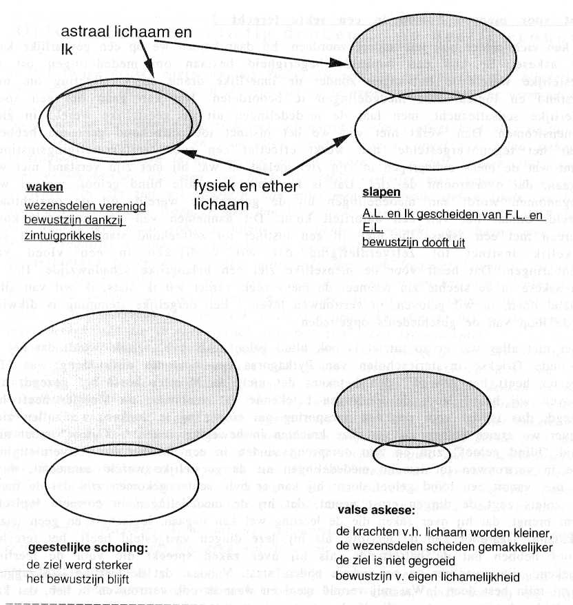 door François De Wit In een tijd waar iedereen ernaar streeft onbeperkt zijn behoeftes te bevredigen, wordt er op een ouderwetse traditie als vasten natuurlijk geen acht meer geslagen. Eertijds dacht men dat verstervingen doen en vasten een geestelijke verdienste was. Het hielp ons om ons te onthechten van dit aardse tranendal. Mystici streefden op die manier naar een hoger bewustzijn. Zij deden daarbij ook nog aan zelfkastijding. Daardoor heeft het begrip "askese" een slechte bijklank gekregen. Rudolf Steiner legt uit dat askese in het Grieks eigenlijk betekent "zich oefenen", sluimerende krachten sterker maken. Zo zouden we legermaneuvers een askese kunnen noemen: er worden vaardigheden geoefend die in oorlogstijd zullen van pas komen. Oefeningen als de rozenkruisermeditatie zijn een askese voor wie een hoger bewustzijn wil ontwikkelen.Voor de geestelijke ontwikkeling is askese in de middeleeuwse betekenis niet noodzakelijk, eigenlijk is ze zelfs schadelijk. Rudolf Steiner legt verder uit, in dezelfde voordracht over askese: Waarom schouwen de mensen de bovenzinnelijke wereld niet ? Omdat ze alleen maar een bewustzijn hebben zolang er zintuiglijke indrukken uit hun omgeving opgenomen worden. Verdwijnen deze indrukken -bij het inslapen- dan kan de gewone mens ook niet zijn bewustzijn in stand houden. Het doel van een geestelijke scholing is nu om de ziel gewoon te maken om zich te vullen met inhouden die niet uit de zintuiglijke wereld stammen. Die inhouden zijn dan meditaties. Na verloop van (soms zeer lange) tijd is de ziel sterk genoeg om bewust te blijven als alle zintuiglijke indrukken verdwenen zijn. In de Middeleeuwen leefde er bij vele geestelijken een sterk verlangen naar rechtstreeks contact met de goddelijke wereld. Door een bepaalde askese verzwakten ze de krachten van hun fysiek lichaam. Ze kregen visioenen en verschijningen die weinig met de geestelijke wereld, maar veel met hun eigen lichamelijkheid te maken hadden. De juiste manier om helderziend te worden is volgens Rudolf Steiner niet het lichaam verzwakken, maar wel de ziel sterker maken. Mensen die, om vorderingen te maken op geestelijk vlak, geen vlees eten maar er wel voortdurend lopen aan te denken, die schaden zelfs hun ontwikkeling. Door een gepaste ontwikkeling van de geesteskrachten valt de behoefte naar vlees vanzelf weg Iemand zou nu kunnen concluderen: mooi, het is dus toch beter om iedere goesting te bevredigen in plaats van gefrustreerd rond te lopen. Fout ! Want Rudolf Steiner gaf ons de zgn. nevenoefeningen. Die hebben tot doel om de mens te leren niets anders te denken, te voelen en te doen dan hetgeen hij besloten heeft om te denken, te voelen en te doen vanuit een inzicht, m.a.w. iedere handeling, iedere motivatie moet grondig overwogen worden. Op de bladzijde hiernaast zetten we een en ander nog even in een schema, en we gaan dan verder met een uittreksel uit dezelfde voordracht. De titels voegden we zelf toe. Waarom willen de mensen niet weten van een bovenzinnelijke wereld ?