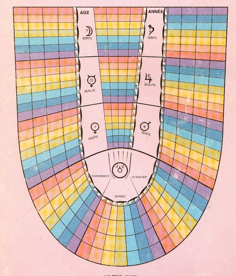 De mens begint linksboven aan zijn levensloop. Na drie keer zeven jaar 'aanloop' komt hij pas echt tot zijn in-carnatie. Die staat in het teken van de Zon. Vanaf zijn 42ste jaar mogen we al van een soort ex-carnatie spreken, tot het 63ste jaar. Daarna is de mens 'vrij', in de zin dat zijn karma voor dit aardeleven afgewerkt is. De rest van zijn dagen kan hij vorm geven zonder eventuele karmische hindernissen. Maar er zijn dan andere mogelijke belemmeringen.