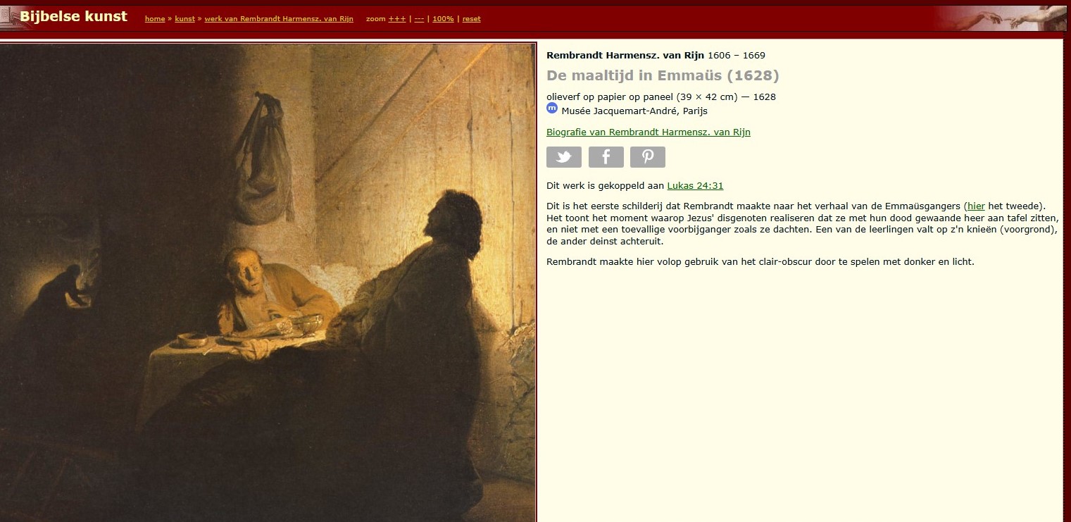 De versie van 1648 in het Louvre Licht en donker in het leven van Rembrandt Een persoonlijk levensdrama ging vooraf aan deze uitbeelding van Emmaüs. In 1643 verliest Rembrandt zijn geliefde echtgenote Saskia. Rudolf Steiner hierover : “Er ligt iets immens menselijk ingrijpends in dat wat tientallen jaren lang bij hem aan de oppervlakte wilde komen. Want men kan niet ontkennen : Rembrandt was begaafd met een geniaal talent wat kunst betreft maar nog niet diep, hij ging niet in de diepte van de dingen. Wat hij oorspronkelijk schiep, het was al groots, maar op een bepaalde manier mist het diepgang. En toen gebeurde het, het moet 1642 geweest zijn, dat er een smartelijk verlies in zijn leven kwam; toen verloor hij zijn vrouw die hij zo innig liefhad, met wie hij zo verbonden was, die voor hem werkelijk een tweede leven was. Maar dit groot verlies werd voor hem juist de bron van een oneindige zielsverdieping. Zo zien we dan dat sinds dat ogenblik zijn scheppen diepgang krijgt, oneindig meer ziel krijgt dan daarvoor. En de geniale Rembrandt wordt nu ook de in zichzelf verdiepte Rembrandt.”