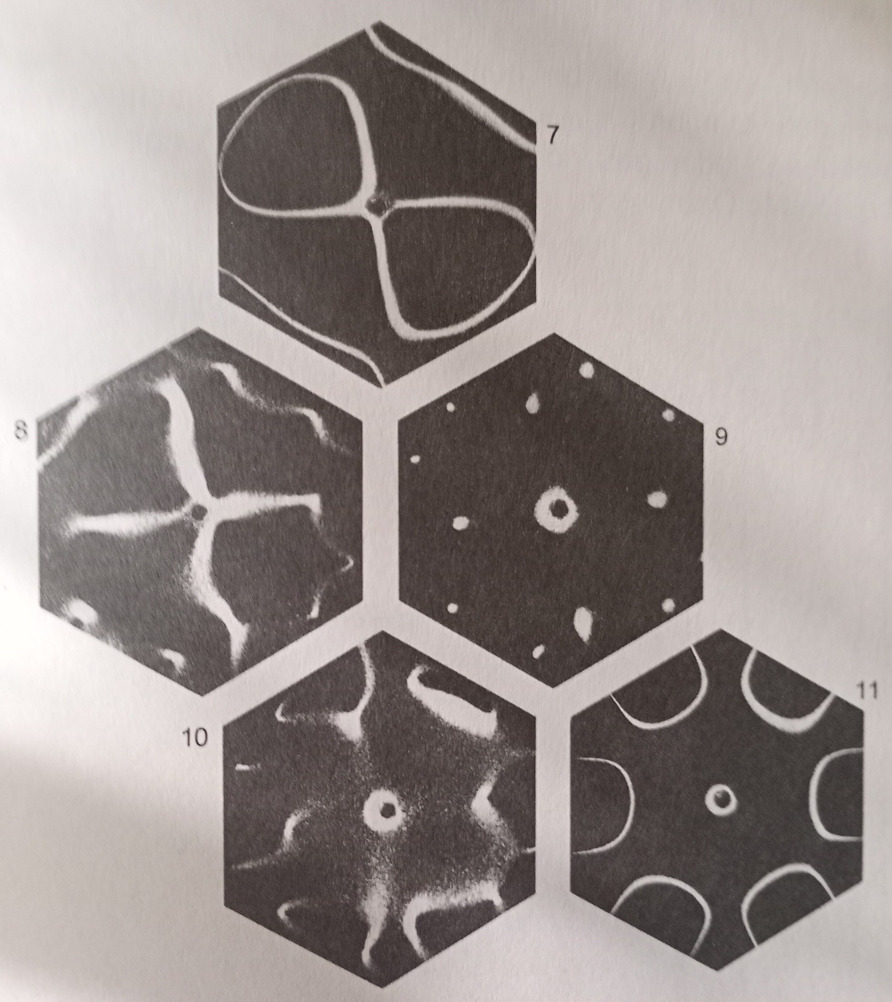“Laten we op het einde van dit overzicht even onze fantasie de vrije loop. Misschien waren het geen botsingen en grote schokken in het begin van ons zonnestelsel maar een bijzonder soort klank, de harmonie waarvan Johannes Kepler dacht dat ze in het begin der tijden klonk. Hoe hypothetisch dat ook mag klinken, we weten in ieder geval sinds het werk van Ernst Chladni ( 1756-1827) dat muziektonen inwerken op de materie en er bepaalde geordende verhoudingen in teweeg brengt. We kennen de Chladnische figuren die ontstaan als men zand op een plaat strooit en dan met een strijkstok over de zijkant van die plaat strijkt en zo trillingen door die plaat laat gaan. ( …. )