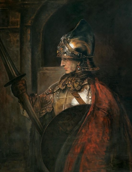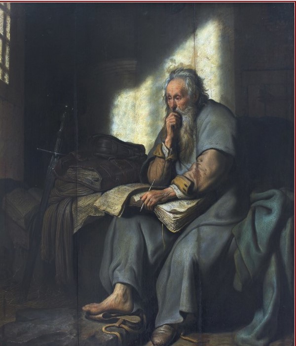 In een van zijn laatste zelfportretten beeldt Rembrandt zichzelf af als de apostel Paulus. In een vroeger schilderij uit 1627 had hij deze apostel al eens geschilderd, hoe die nadenkend in de gevangenis zat en in een groot boek schrijft, toen nog met de trekken van een oude man. Nu geeft hij de apostel zijn eigen gelaatstrekken. Laat men de merkwaardige blik op zich inwerken dan schijnt die te zeggen : ja, ook ik heb het licht van Damascus mogen zien. “Wil Rembrandt hier zeggen dat hij – zoals de verblinde Saulus die door de duisternis moest gaan – de “klaarheid van dit licht” heeft gezien ?" We mogen aannemen dat een mens die zijn leven lang geworsteld heeft met het geheim van licht en duister, een diepe verbinding moet hebben met de ervaring van Paulus in Damascus. In het late zelfportret als apostel Paulus kunnen we een vingerwijzing zien van de kunstenaar naar een diepere laag van zijn persoonlijkheid.