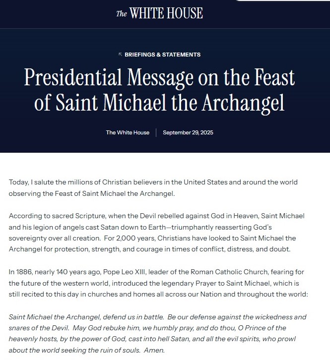 De Amerikaanse president Donald Trump heeft al enkele keren op 29 september de aandacht gevestigd op dit gebed. Dat is iets wat een Westeuropese staatsman nooit zou aandurven.