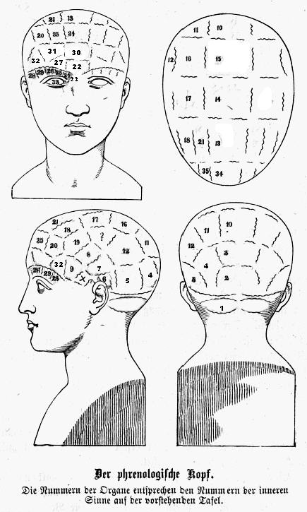 Algemeen gesproken zoekt de frenologie in de vorm van de schedel de afdruk van de innerlijke gesteldheid van ons Ik, doordat algemene kenmerken opgesteld worden en dan verklaard wordt dat die verhoging dat betekent of dat knobbeltje iets anders enz. Men wil de menselijke eigenschappen in verband brengen met de verschillende verhogingen op onze schedel. In het beendergestel van onze schedel zoekt de frenologie dus een soort plastische afdruk van ons Ik.
